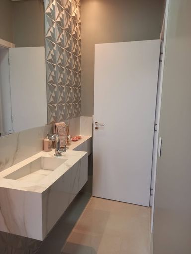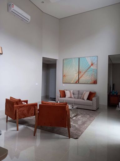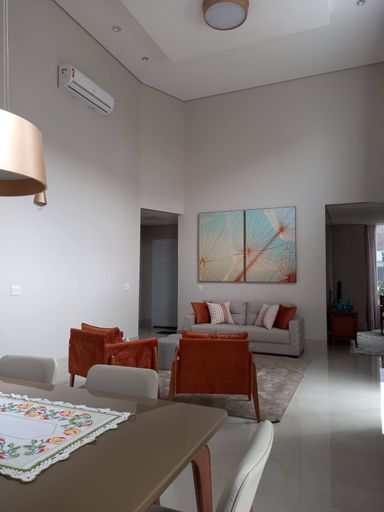 Residência térrea de alto padrão em terreno de 525 m² e 265 m² de área construída, projetada para integrar conforto, funcionalidade e acabamento superior. Ao entrar, o hall de entrada conduz à ampla sala em três ambientes — TV, estar e jantar — com pé-direito duplo que cria sensação de amplitude e fluidez para o pergolado de vidro na área externa, ideal para integrar lazer e convívio. A planta dispõe de três suítes, sendo duas com planejados e a suíte master com closet, pia dupla, chuveiro duplo e porta-balcão automática com acesso direto ao jardim, oferecendo privacidade e praticidade. Há lavabo social e um escritório com móveis planejados, perfeito para home office. A cozinha é totalmente planejada com forno elétrico e micro-ondas embutidos, complementada por lavanderia fechada com planejados. A área gourmet é completa, com planejados, ilha, cooktop e churrasqueira, conectando-se a uma piscina aquecida com hidro, iluminação em LED, cascata e ducha, além de banheiro externo e amplo quintal para convivência e lazer. Complementam a propriedade depósito/despejo, garagem coberta para dois carros e ar-condicionado em todos os ambientes. A casa conta com geração própria de energia por placas fotovoltaicas e infraestrutura para aquecimento solar, além de sistema de aspiração de pó central Bean Electrolux. Os acabamentos são de alto padrão: porcelanato e revestimentos 3D de marcas nobres (Portinari, Ceusa, Roca), louças e metais Deca/Docol e esquadrias de alumínio Delta, resultando em um imóvel pronto para morar, eficiente e com acabamento sofisticado.
