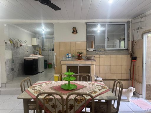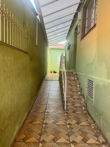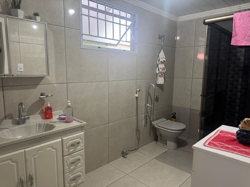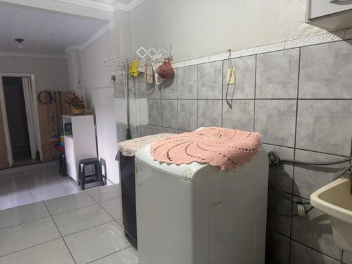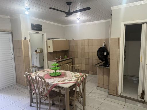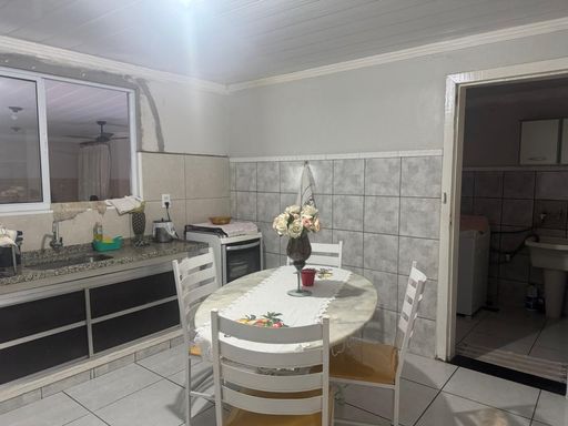 Três quartos, sala, cozinha, banheiro, lavanderia, garagem para um carro e nos fundos mais uma cozinha, quarto e um banheiro.
